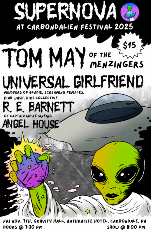 After the Light Parade, the fun continues with Supernova, a family-friendly concert held in Gravity Hall at Hotel Anthracite. Enjoy an unforgettable evening of live music headlined by Tom May of The Menzingers, joined by an incredible lineup of talented performers!